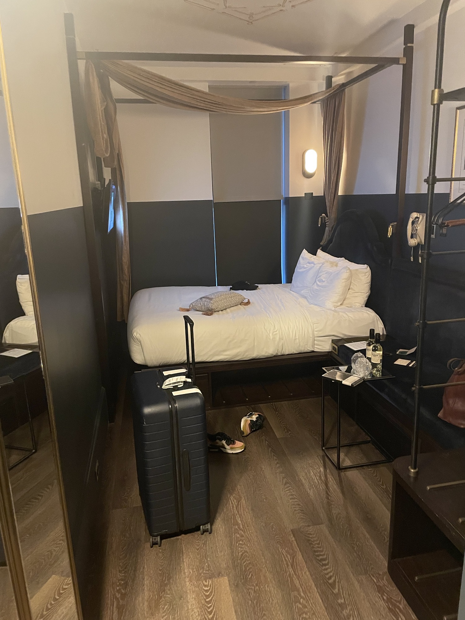 HOTEL EMPLOYEE: Welcome to Very Cool NYC Hotel that’s cool because it has no Things in it, because you’re so cool you don’t need things. Me: Where can I put my bag? EMPLOYEE:…The floor Me: …