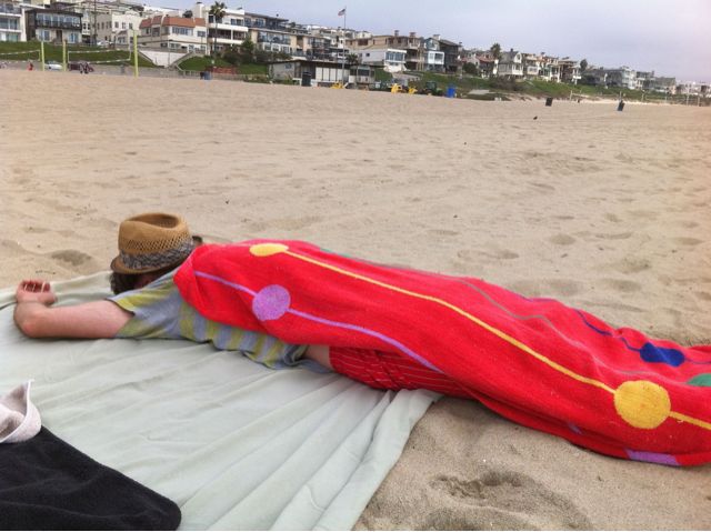 In la, one can frequent the beach and do beach things, but it tain’t no NC beach, no sir, but beautiful in an entirely different way, and steve is just as game to be buried.