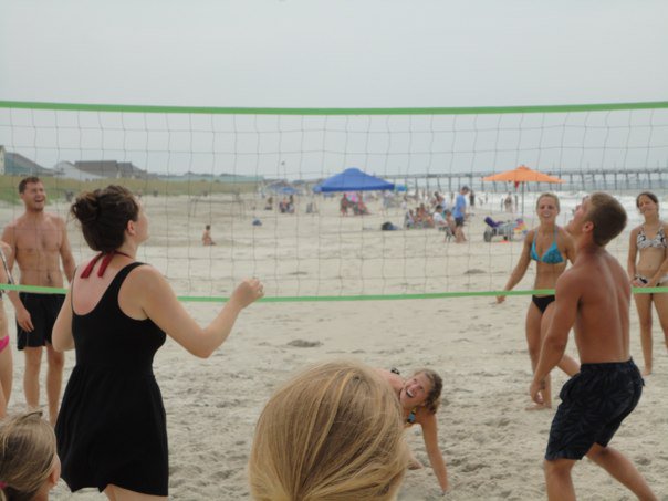 Here I am, viciously playing EXTREME BEACH VOLLEYBALL with my athletic cousins. It’s okay. It’s fine. I have other gifts.