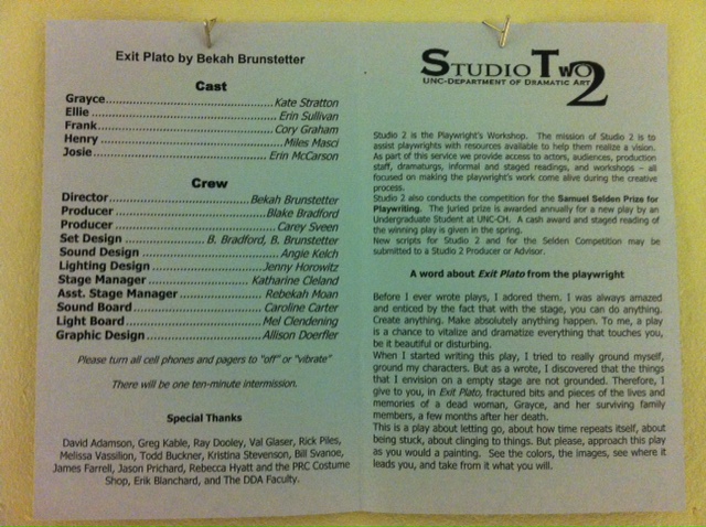 A few years ago, the UNC Theater Department lost the incredible Ken Strong to cancer. Today a gallery of student theater pictures / articles / programs was dedicated to him – including THIS PROGRAM FROM …