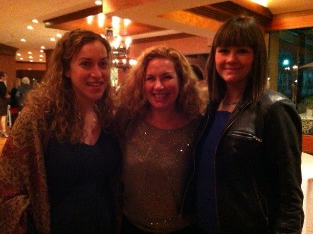 Last night, Kim Rosenstock (fellow NYC lady playwright; writer on New Girl) and I patroned other fellow NYC lady playwright Molly Smith Metzler’s play Elemeno Pea at South Coast Repertory, opening night. Here we all …