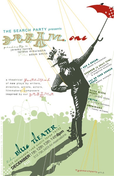 This weekend marks my texas debut! I wrote a play called I Had a Dream for this, in which a young gal dreams she made out with a homeless man.