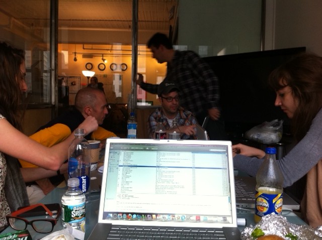 I always wondered what a writer’s room was like. Core ingredients include pensive stares, dirty rental computers, and lunch’s giant sandwiches revisited. We’re squatting in a temporary office until our Dumbo office is ready – …